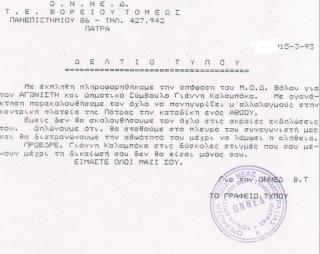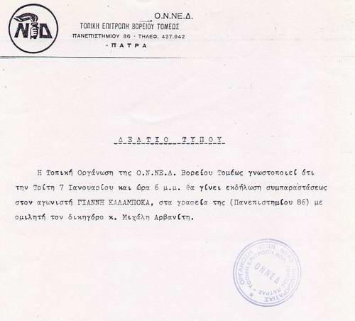 Και μερικά δελτία Τύπου της ΟΝΝΕΔ υπέρ Καλαμπόκα