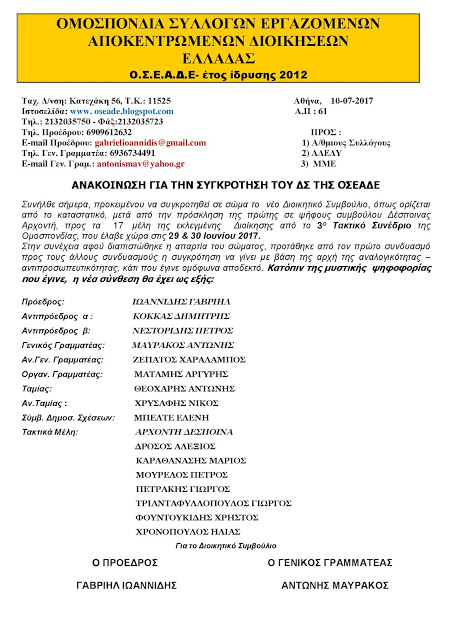 Συγκρότηση Νέου ΔΣ της ΟΣΕΑΔΕ