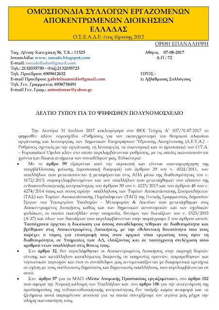 OΣΕΑΔΕ: Δελτίο Τύπου για το ψηφισθέν Πολυνομοσχέδιο Posted on 09/08/2017 by ΑΡΚΙ κοινοποιήση: Κλικ για αποστολή ενός συνδέσμου μέσω email σε έναν/μία φίλο/η(Ανοίγει σε νέο παράθυρο) Email Κλικ για εκτύπωση(Ανοίγει σε νέο παράθυρο) Εκτύπωση Πατήστε για κοινοποίηση στο Facebook(Ανοίγει σε νέο παράθυρο) Facebook Κλικ για κοινοποίηση στο LinkedIn(Ανοίγει σε νέο παράθυρο) LinkedIn Κάνε κλικ για να μοιραστείς στο X(Ανοίγει σε νέο παράθυρο) Χ Μου αρέσει! Φόρτωση... Σχετικά Δελτία τύπου Ενημέρωση Ο.Σ.Ε.Α.Δ.Ε. Συνδικαλιστικά