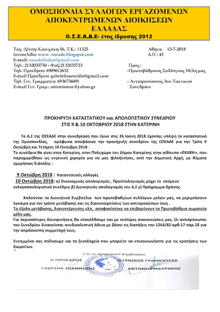 ΟΣΕΑΔΕ: Προκήρυξη ενδιάμεσου Συνεδρίου στις 8 & 9 Οκτωβρίου 2018 στην Κατερίνη Posted on 16/07/2018 by ΑΡΚΙ κοινοποιήση: Στείλε ένα σύνδεσμο σε έναν φίλο(Ανοίγει σε νέο παράθυρο) Email Εκτύπωση(Ανοίγει σε νέο παράθυρο) Εκτύπωση Mοιραστείτε στο Facebook(Ανοίγει σε νέο παράθυρο) Facebook Μοιραστείτε στο LinkedIn(Ανοίγει σε νέο παράθυρο) LinkedIn Μοιραστείτε στο X(Ανοίγει σε νέο παράθυρο) Χ Μου αρέσει! Φόρτωση... Σχετικά Ο.Σ.Ε.Α.Δ.Ε. Συνδικαλιστικά