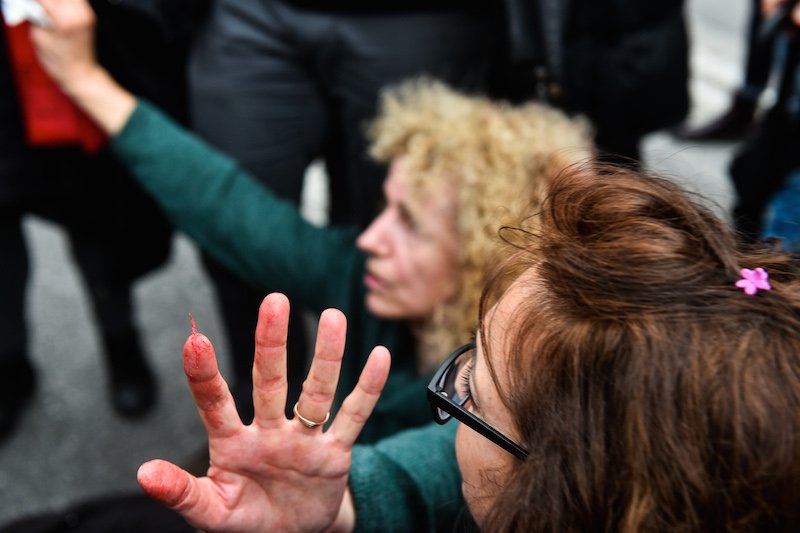 Από τα επεισόδια τραυματίστηκε η Δριμάλα Θεοδώρα, μέλος του Δ.Σ. της ΔΟΕ και συνδικαλίστρια του ΠΑΜΕ.