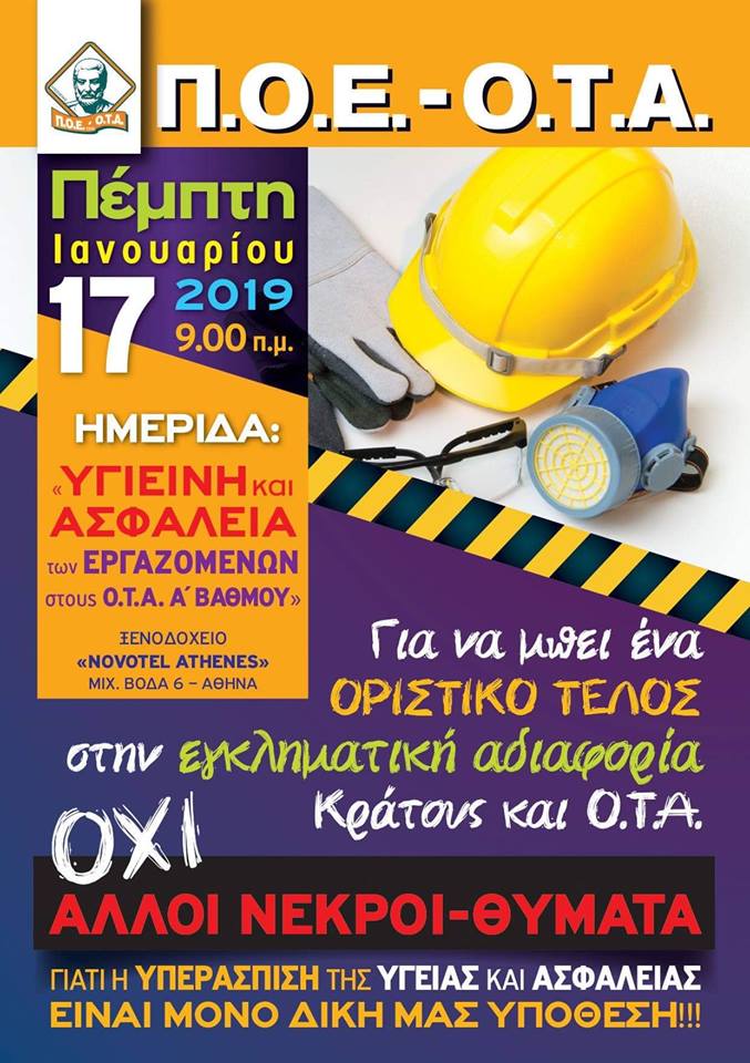Έχουμε την ευθύνη να προτείνουμε μέτρα, να απαιτήσουμε την εφαρμογή της νομοθεσίας για την ασφάλεια και την υγειινή στους χώρους δουλειάς, να απαιτήσουμε τη βελτίωση και την επικαιροποίηση της. Η ζωή, η υγεία και η σωματική ακεραιότητα των συναδέλφων μας δεν είναι διαπραγματεύσιμο μέγεθος.