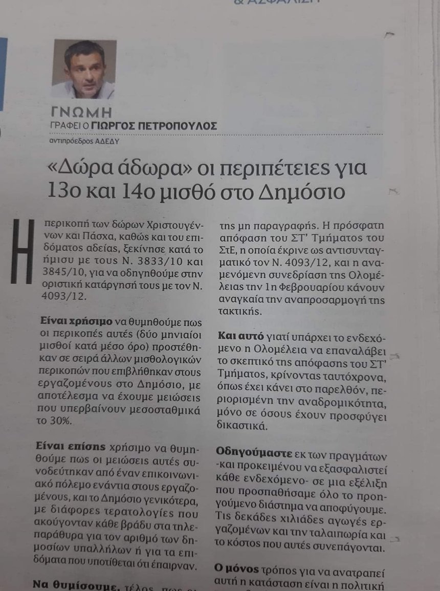 “Δώρα άδωρα” :οι περιπέτειες του 13ου και 14ου μισθού στο Δημόσιο – του Γιώργου Πετρόπουλου
