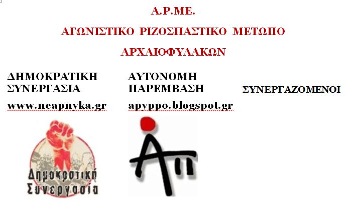 - Ανακοίνωση ΑΡME για τις αλλαγές Αρχιφυλάκων στα Μουσεία & τους Αρχ/κούς χώρους