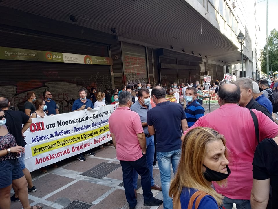 Σε εξέλιξη η συγκέντρωση διαμαρτυρίας των υγειονομικών στο Υπ. Εργασίας για την ένταξη τους στα ΒΑΕ