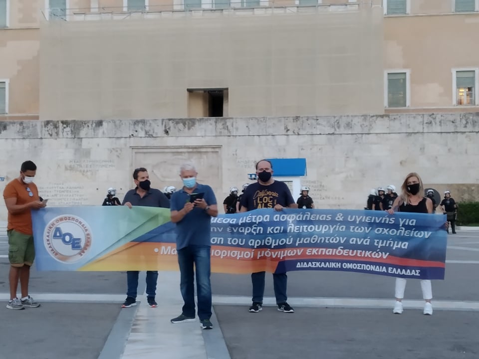 Σε συγκεντρώσεις διαμαρτυρίας προχώρησαν ΟΛΜΕ και ΔΟΕ χθες Πέμπτη 17 Σεπτεμβρίου στις 6.30μμ στα Προπύλαια με αφορμή την κατάσταση που έχει διαμορφωθεί κατά την έναρξη της σχολικής χρονιάς και για τα ανεπαρκή υγιειονομικά μέτρα κατά το άνοιγμα των σχολείων!