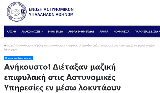 Η η Ένωση Αστυνομικών Υπαλλήλων Αθηνών καταγγέλει μη τήρηση των μέτρων για την αποφυγή διασποράς του κορονοϊού
