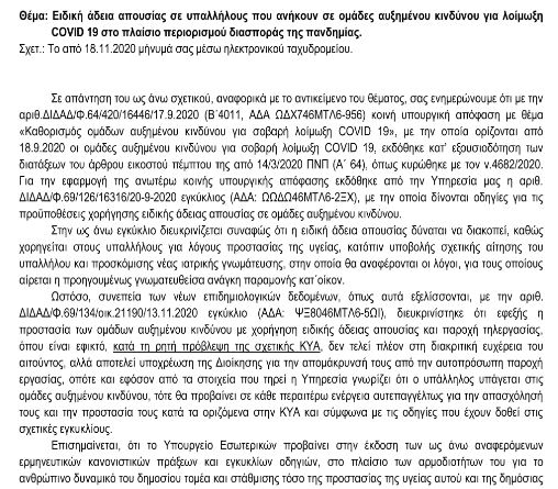Έγγραφο: Είναι υποχρεωτική η ειδική άδεια απουσίας σε εργαζομένους «αυξημένου κινδύνου»;