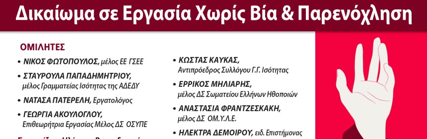Με υψηλή συμμετοχή ολοκληρώθηκε η εκδήλωση «Δικαίωμα σε εργασία χωρίς βία και παρενόχληση»