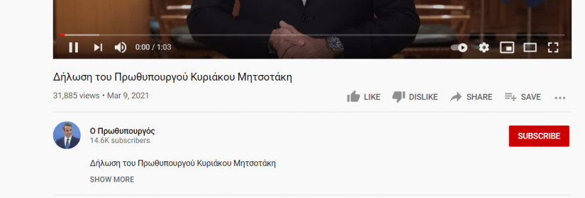 Λόγω των μαζικών dislikes έκλεισαν τη δυνατότητα σχολίων στο Youtube του Κ. Μητσοτάκη (ΦΩΤΟ)