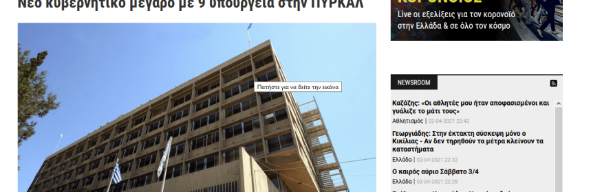 Η πανδημία βρίσκεται στο χειρότερο σημείο της ΜΕΘ δεν υπάρχουν η αγορά ετοιμάζεται για ένα αβέβαιο άνοιγμα αλλά η κυβέρνηση των αρίστων σχεδιάζει νέο κυβερνητικό μέγαρο με 9 υπουργεία στο χώρο της ΠΥΡΚΑΛ . Διαβάζουμε στα σημερινά φύλα ότι η Κυβέρνηση ετοιμάζει για αύριο μια νέα φιέστα πιθανόν σε μια προσπάθεια να αλλάξει την αντζεντα. Έτσι το πρωί του Σαββάτου