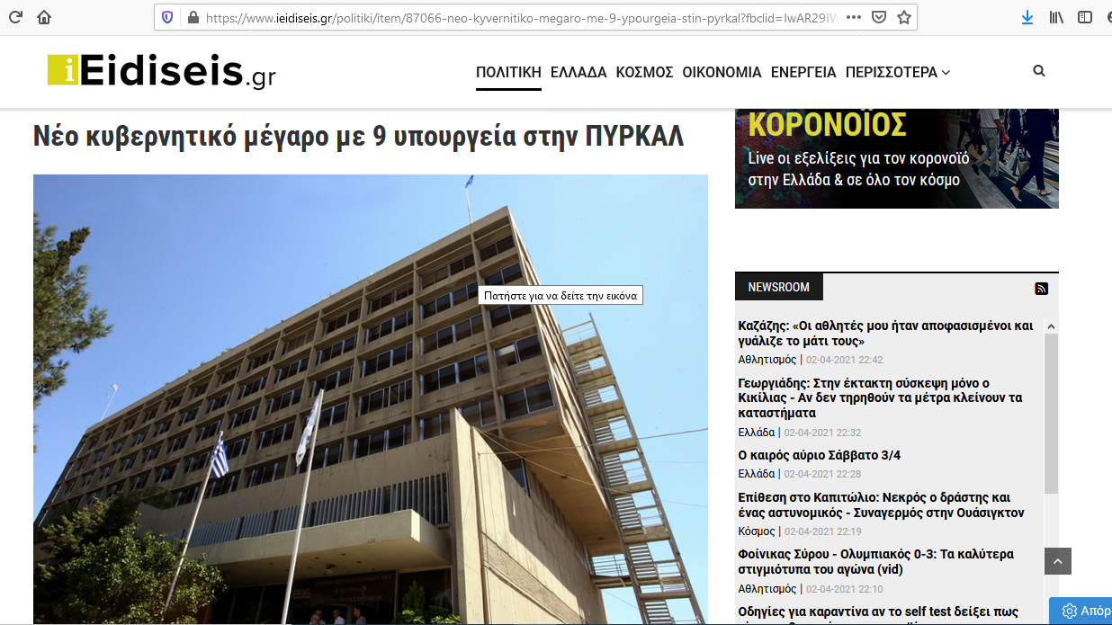 Η πανδημία βρίσκεται στο χειρότερο σημείο της ΜΕΘ δεν υπάρχουν η αγορά ετοιμάζεται για ένα αβέβαιο άνοιγμα αλλά η κυβέρνηση των αρίστων σχεδιάζει νέο κυβερνητικό μέγαρο με 9 υπουργεία στο χώρο της ΠΥΡΚΑΛ .