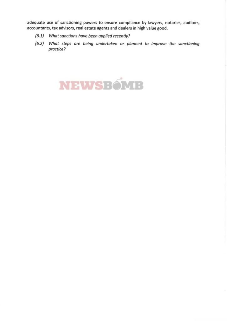 Στο παράρτημα της επιστολής της Ευρωπαίας Επίτροπου Χρηματοπιστωτικής Σταθερότητας Μέιριντ Μακγκίνες παρατίθενται οι σοβαρές διαπιστώσεις του Συμβουλίου της Ευρώπης και τίθενται τα ακόλουθα ερωτήματα: