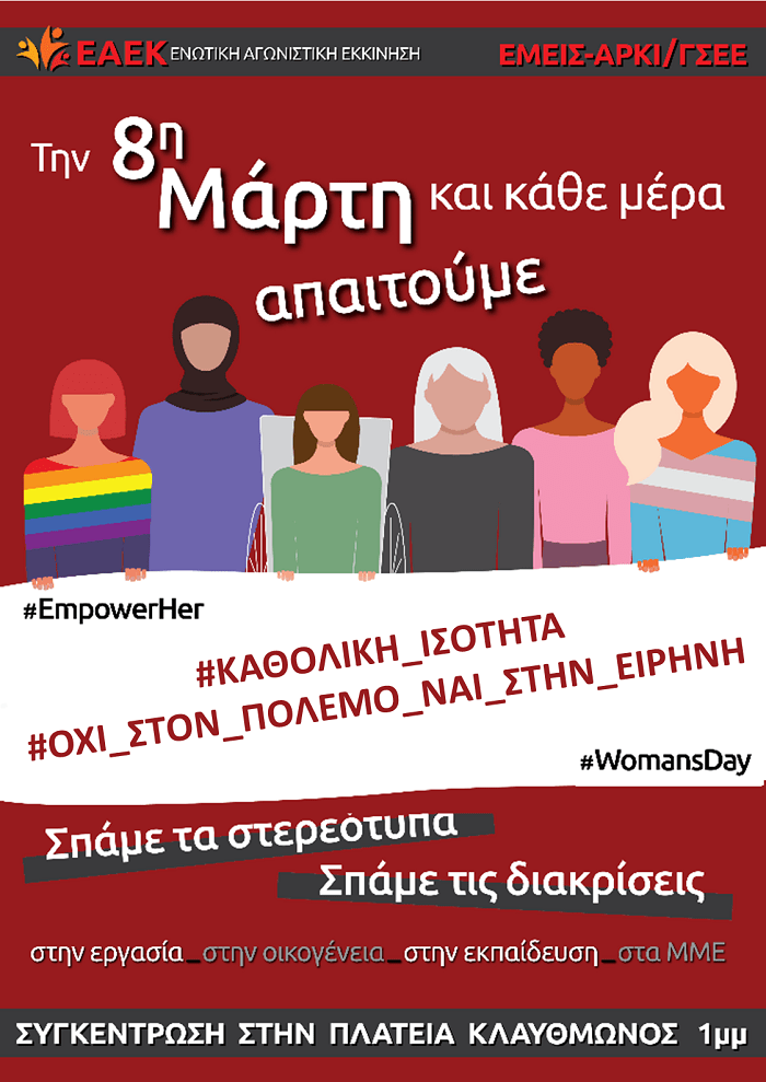 H 8η του Μάρτη δεν είναι γιορτή είναι η συνέχεια των διαρκών αγώνων των γυναικών για ισότητα, για έξοδο από την εκμετάλλευση και την καταπίεση.