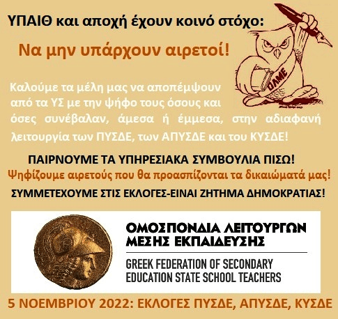 Αθήνα, 19/10/2022 – ανακοίνωση ΟΛΜΕ «Για τις επικείμενες εκλογές ΠΥΣΔΕ, ΑΠΥΣΔΕ, ΚΥΣΔΕ»: