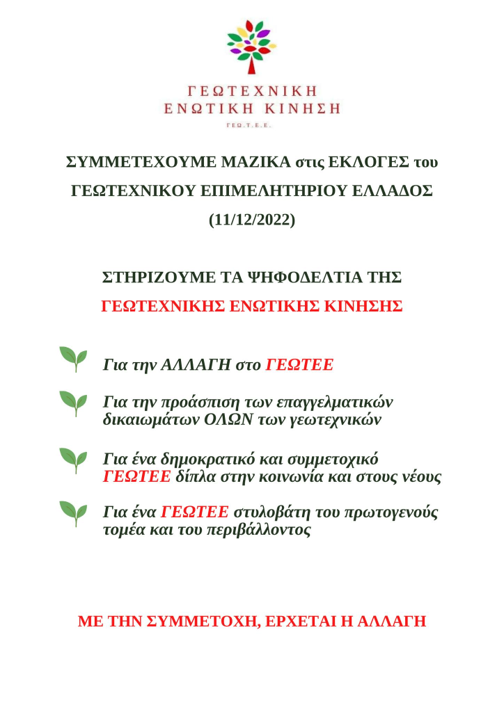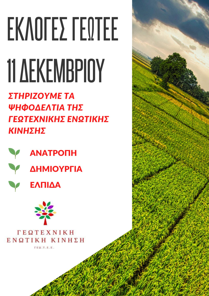 Εκλογές ΓΕΩΤΕΧΝΙΚΟΥ ΕΠΙΜΕΛΗΤΗΡΙΟΥ ΕΛΛΑΔΑΣ στις 11/12 – Στηρίζουμε τα ψηφοδέλτια της ΓΕΚ!
