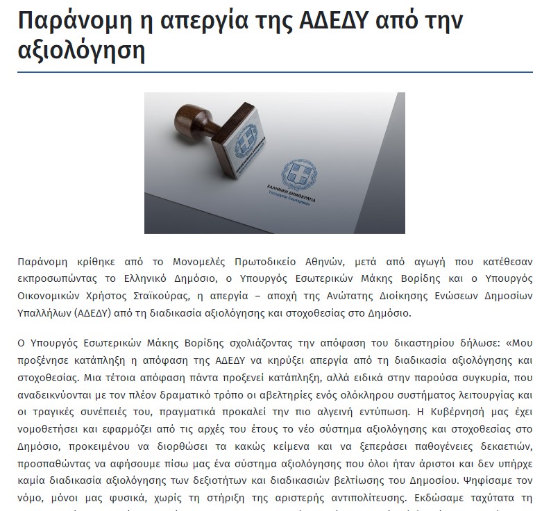 Με αφορμή την παραπληροφόρηση του Υπουργού Εσωτερικών, που αναπαράγουν και διάφορα sites ότι δήθεν η 24ωρη απεργία της ΑΔΕΔΥ για την Πέμπτη 16 του Μάρτη βγήκε παράνομη, ενημερώνουμε τους εργαζόμενους στο Δημόσιο ότι αυτό είναι απολύτως ψευδές.