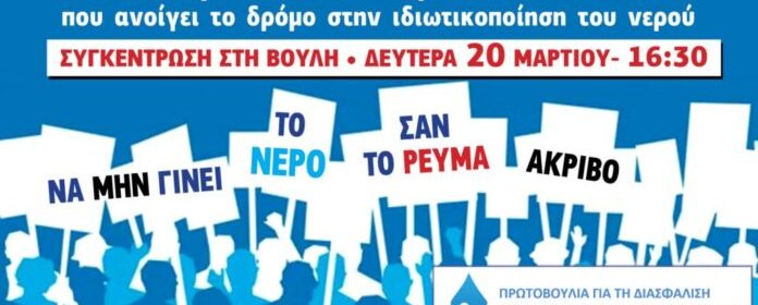 ΠΡΩΤΟΒΟΥΛΙΑ: Να αποσυρθεί το πολυνομοσχέδιο που ανοίγει το δρόμο στην ιδιωτικοποίηση του νερού • Συγκέντρωση στη Βουλή • Δευτέρα 20/3/2023 – 16.30