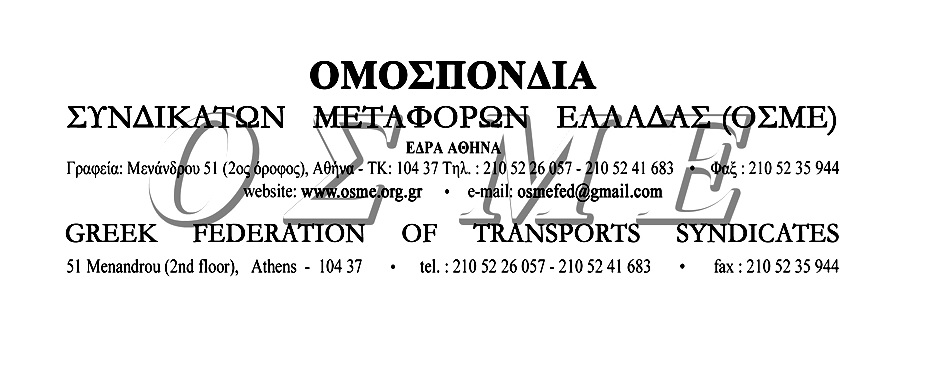 Η Ομοσπονδία Συνδικάτων Μεταφορών Ελλάδας (Ο.Σ.Μ.Ε) συμμετέχει στις εκδηλώσεις τιμής και μνήμης των αγωνιστών του Πολυτεχνείου και στην πορεία προς την Αμερικάνικη Πρεσβεία μαζί με τα σωματεία μέλη της, μαζί με όλους τους εργαζόμενους.