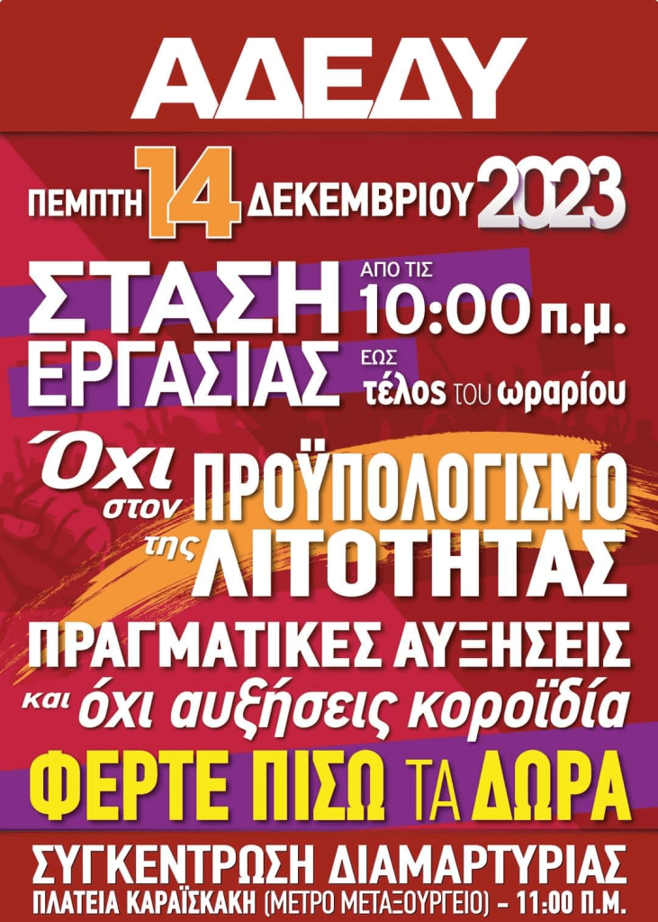 ΑΔΕΔΥ-ΣΤΑΣΗ ΕΡΓΑΣΙΑΣ_ΠΕΜΠΤΗ 14 ΔΕΚΕΜΒΡΙΟΥ 2023