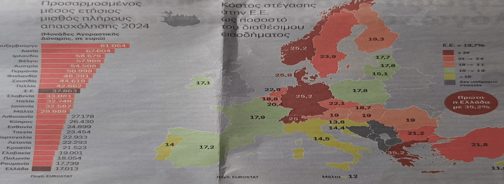 ΑΡΜΑ: Τελευταίοι(!!) στην Ευρώπη σε αγοραστική δύναμη μισθών, πρώτη(!!) σε κόστος ενοικίου – εισοδήματος. Η ΠΡΑΓΜΑΤΙΚΗ Ελλάδα του κ. Μητσοτάκη με τη σφραγίδα της Eurostat..