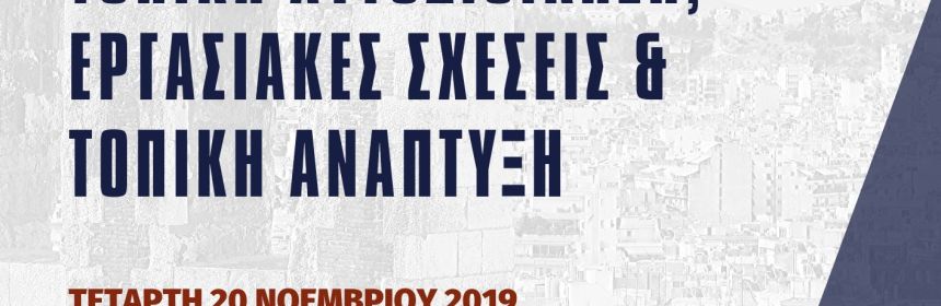 Ημερίδα «Τοπική Αυτοδιοίκηση, Εργασιακές Σχέσεις και Τοπική Ανάπτυξη» 20/11/2019