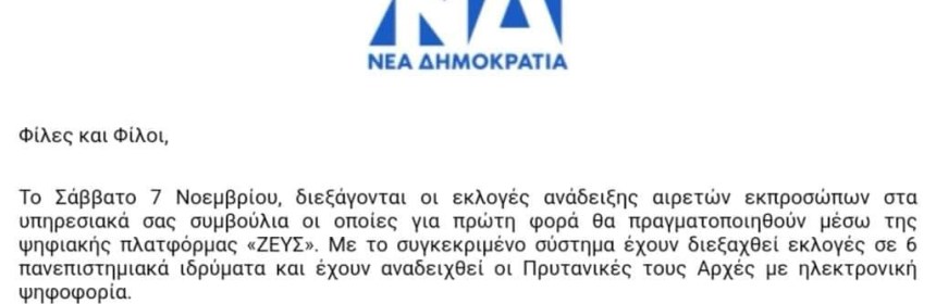 Η ΝΔ επιβεβαιώνει με έγγραφό της πως οι αυριανές εκλογές των εκπαιδευτικών θα είναι βίας και νοθείας.